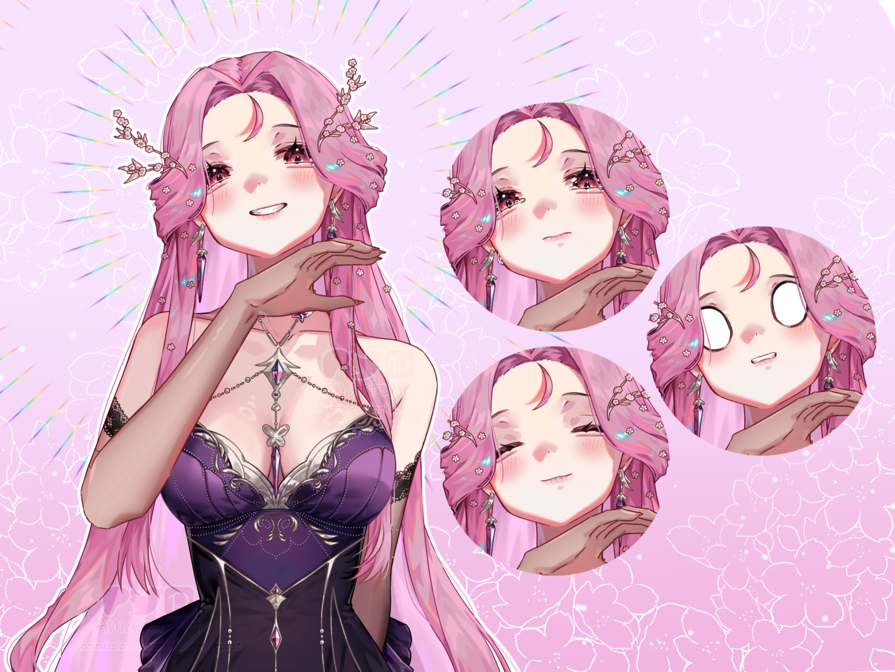 Additional expression (or cum for NSFW) 10+ $Background Price 50+ (dm to specify, just color fill/patterns are free)