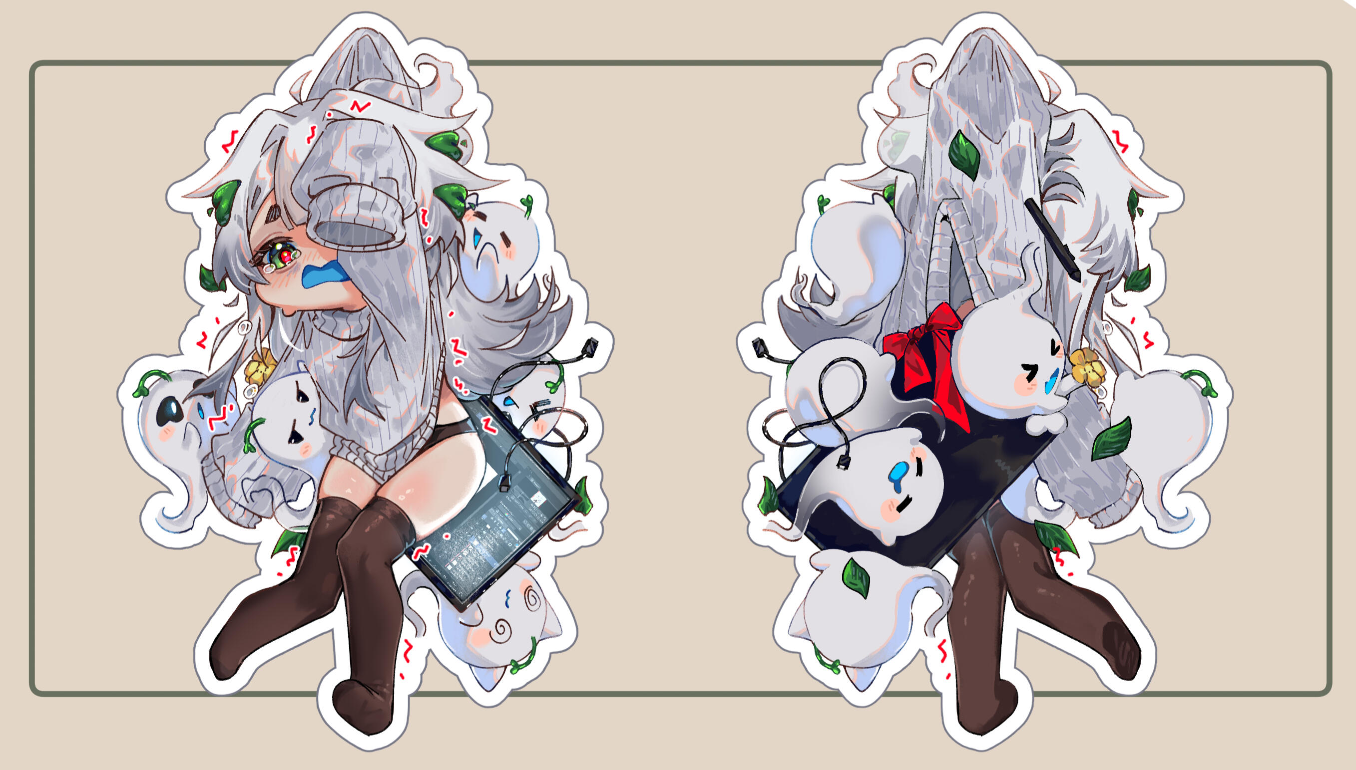 !!! Second character + 100% !!!(For very detailed characters 20 + $)Character design + 60$ !!Additional version of clothes/NSFW version 10+ $Background Price 30+ (dm to specify, just color fill/patterns are free)